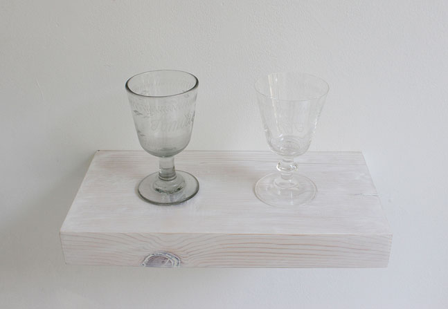 Handwerkliches Glas (19.Jh.) mit der eingravierten Inschrift Amitié (Freundschaft) und Industrieglas mit spiegelverkehrter Gravur – 2010