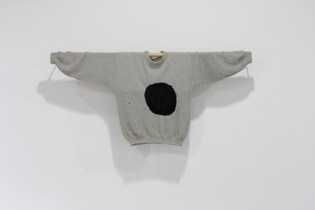 Pullover mit einem Loch vorn und einem hinten, beide zusammen geflickt – 2014