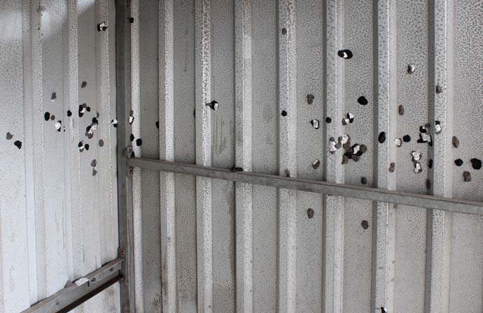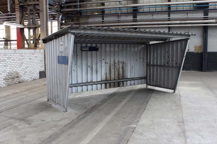 Chewing-gum et papier alu sur les parois d'un abri en tôle – 2013