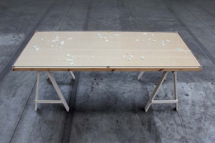 Gouttes en résine sur table Ikea, vitre – 2003