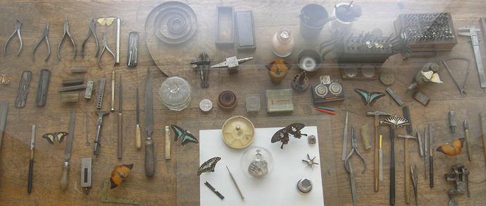 BONHEUR SUBITE – Table et outils d'horloger, papillons