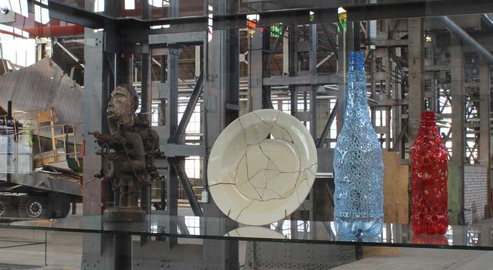 Nagelfetisch (Kongo) / Zerbrochener, geklebter Teller (Maastricht 1941) / Durchlöcherte Plastikflaschen – 2007