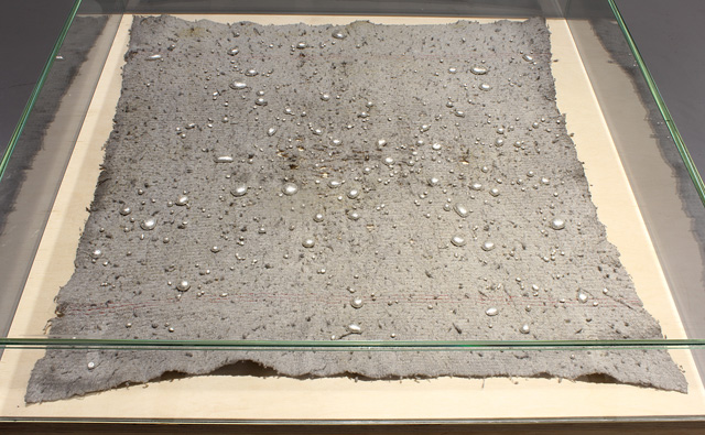 Gouttes d'argent sur serpillière, vitrine, socle en contreplaqué – 2013/2015