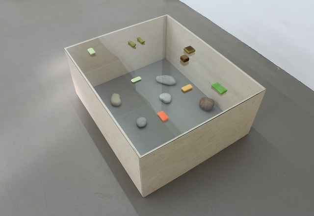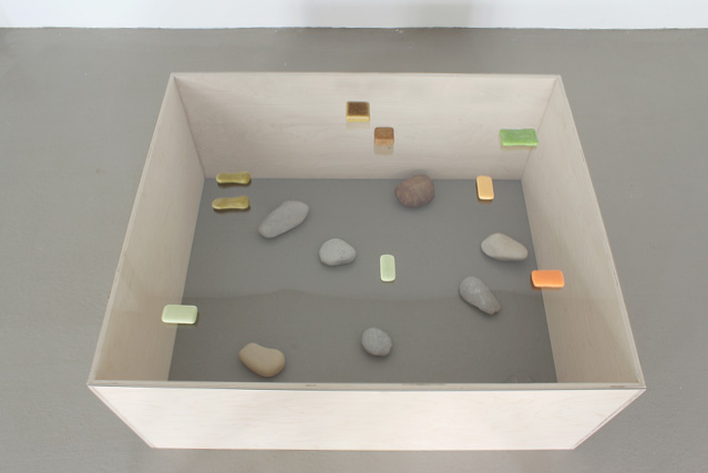 Galets, savons usés, vitre, caisse en contreplaqué – 2015