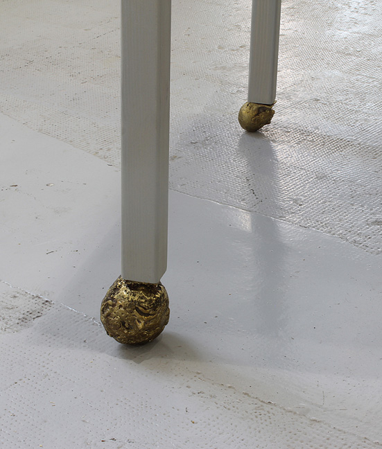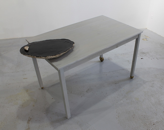 Caillou, goudron sur béton, table en bois peint, pieds en bronze – 2015